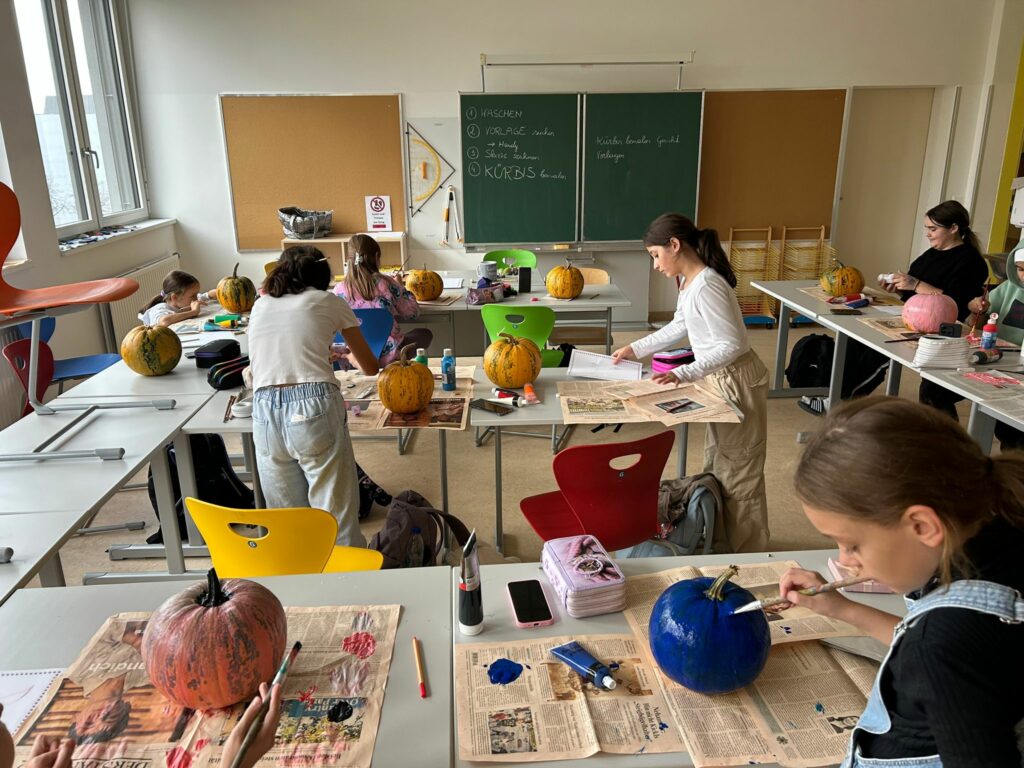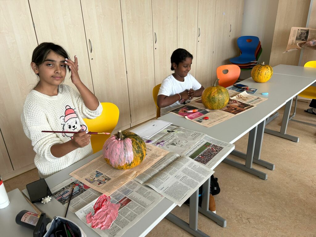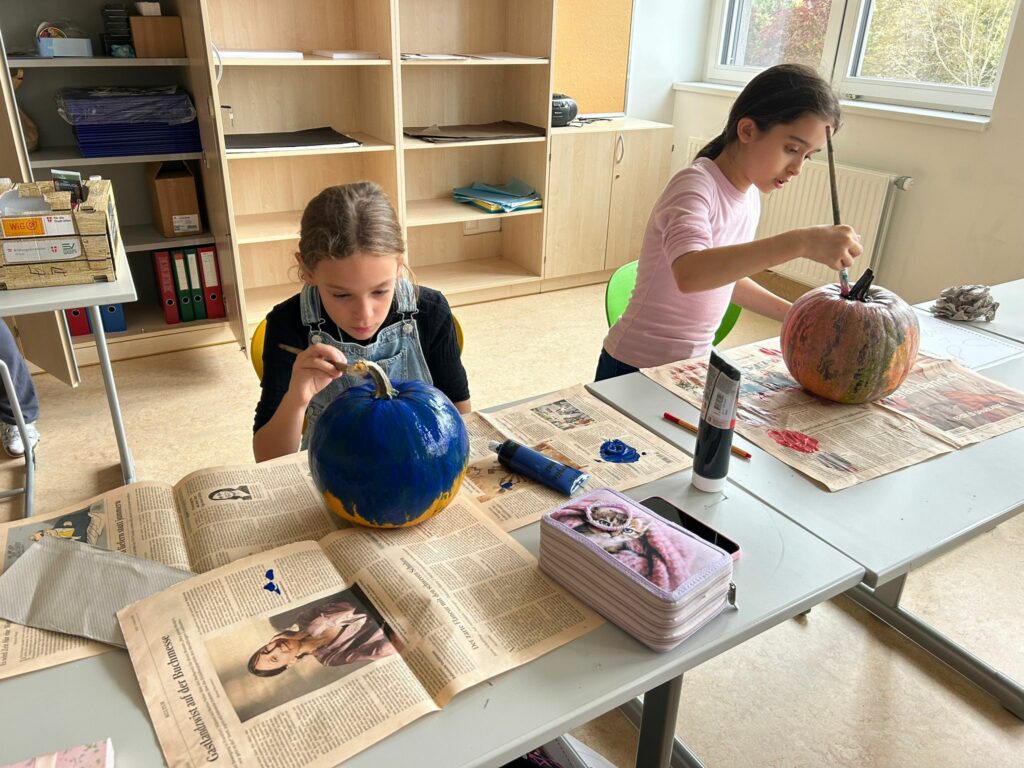 Passend zur Halloweenzeit haben wir in unserem Freifach Kunst & Gestalten gruselige Kürbisse erschaffen. Sie wurden mit Acrylfarben frei nach unseren Vorstellungen bemalt. Happy Halloween!
